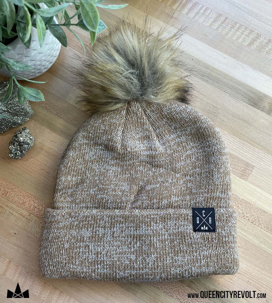 QCR Knit Pom Beanie, Grey/Faux Fur