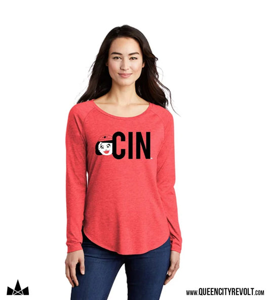 Cincinnati Baseball, Rosie CIN Longsleeve Tee, Red