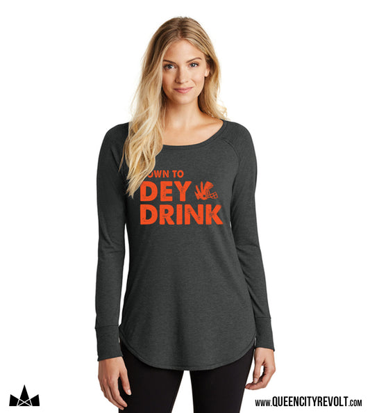 Cincinnati Football, Women's Down To Dey Drink Longsleeve Tee, Dark Grey